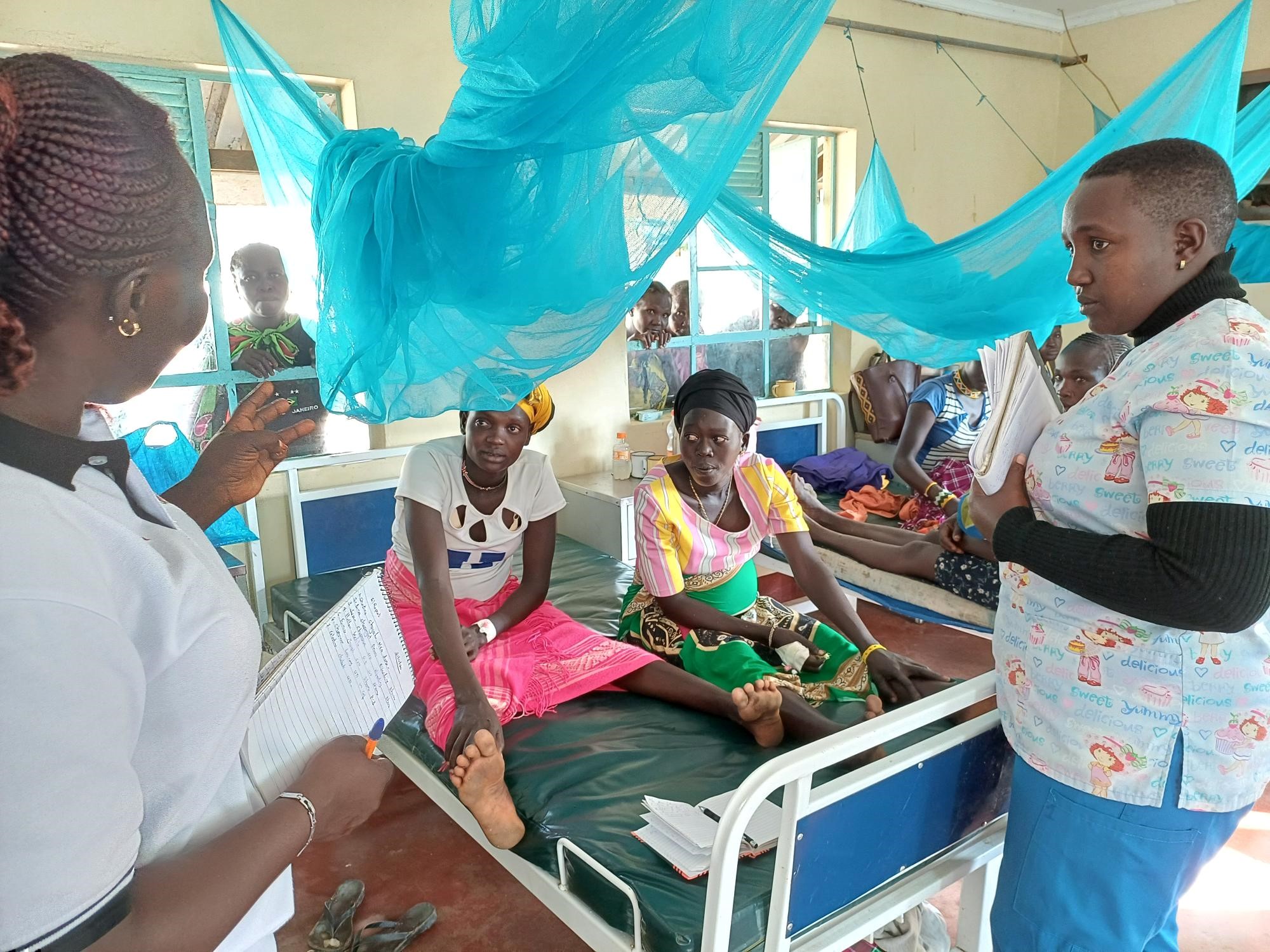 Mammorna är otroligt tåliga. Ingen gnäller trots att det inte finns någon smärtlindring alls att tillgå. Det är också trångt, så det ligger ofta två mammor med barn i samma säng. Idag var det 21 mammor i ett rum med 11 sängar!